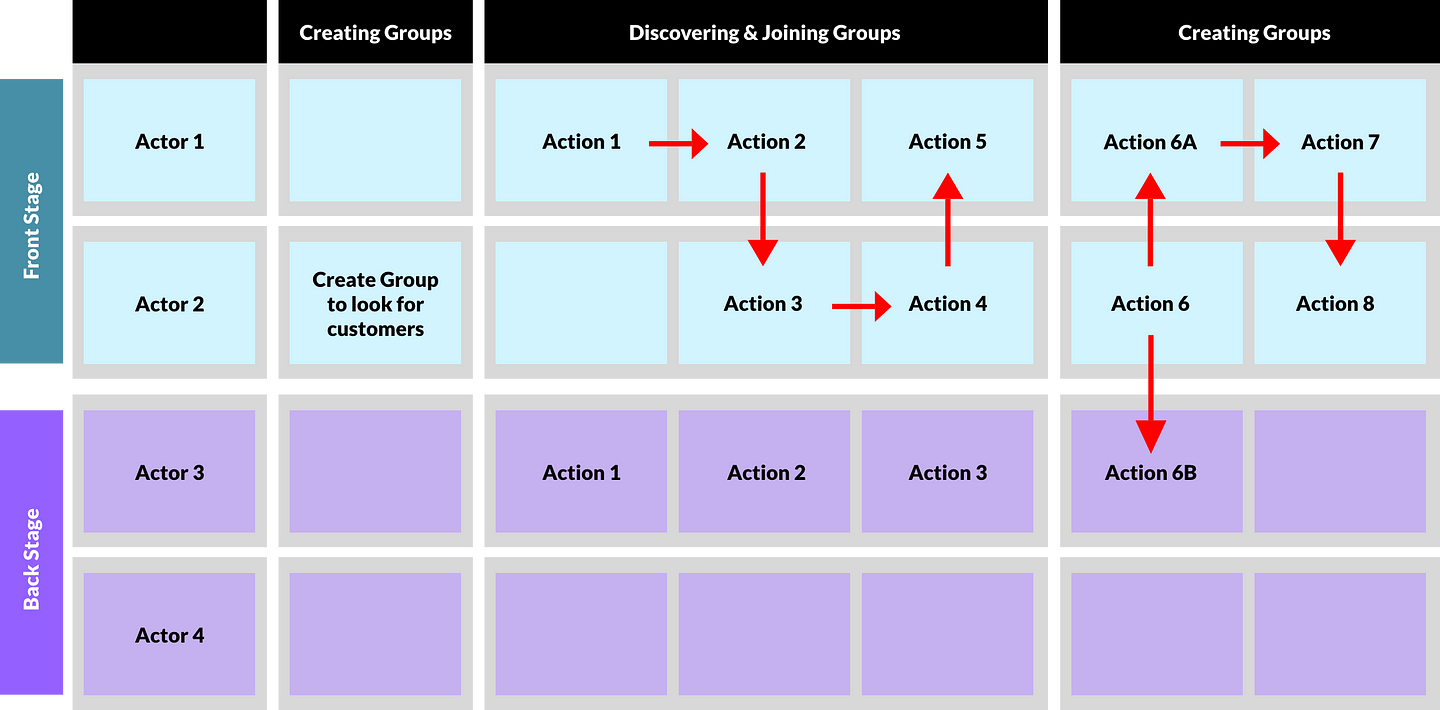 This tool is invaluable for visualizing how users interact with your product to derive value. A service blueprint lays out the entire user journey, capturing interactions from start to finish. It’s not just about the user interface; it also includes backend processes, touchpoints, and pain points.
